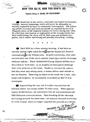 A UFO allegedly whizzed over Iran's capital, disabling the electronic instrumentation of two F-4 Phantom II jets and jamming ground control equipment. Iranian generals said on record that they thought the object was extra-terrestrial.