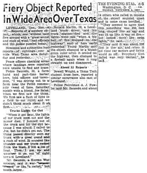 Reports of a UFO sighting in Levelland, Texas in 1957. Photograph: guardian.co.uk